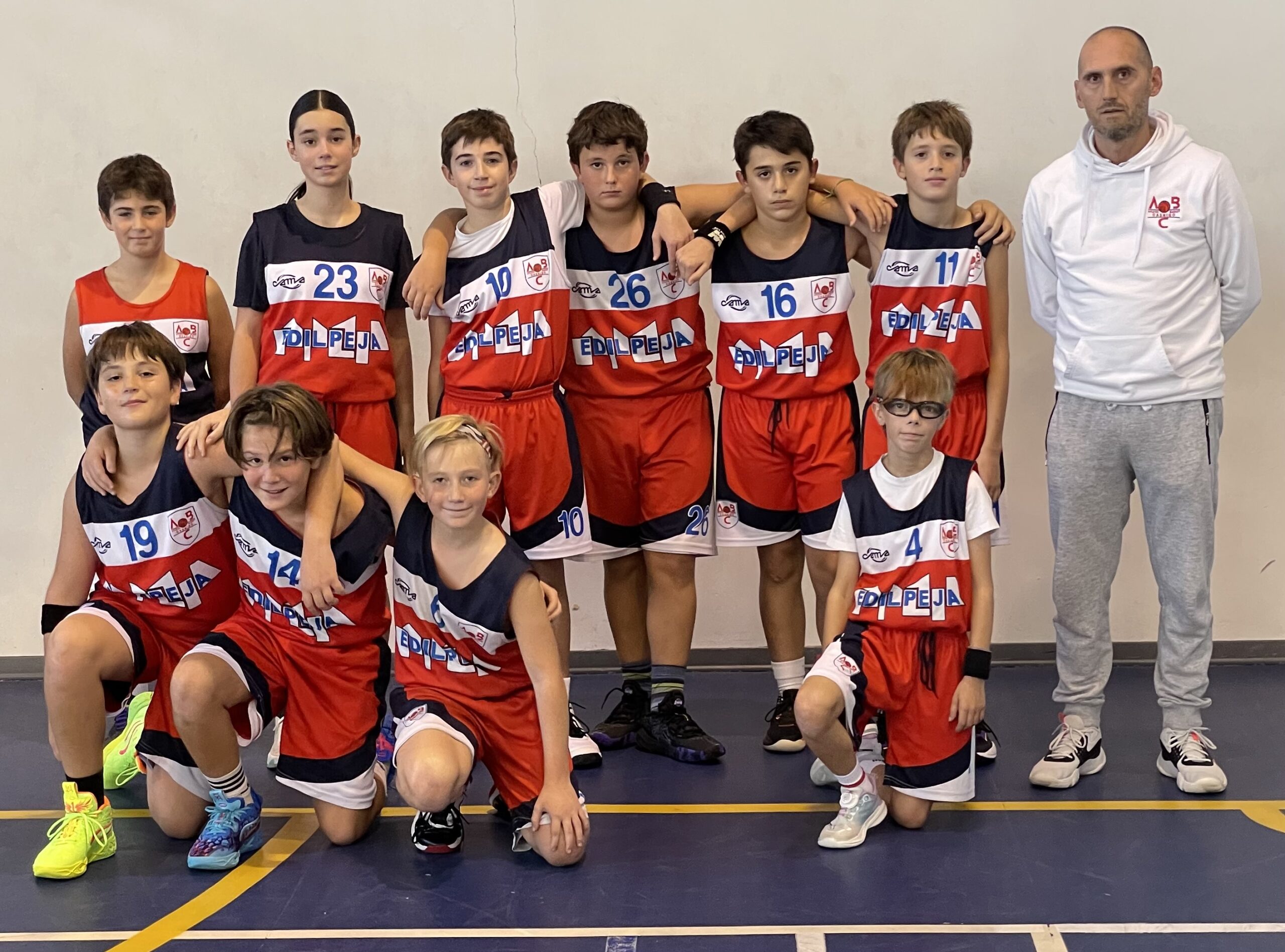 In piedi da sx a dx: #5 Daniele Tallarini, #23 Emma Della Corte, #10 Mattia Tallarini, #26 Michelangelo Bombardieri, #16 Mario Poli, #11 Leonardo Astori, Marco Merelli (Head Coach)